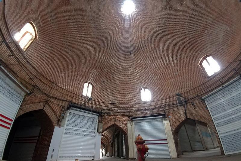 سقف طاقی: سقف بازار اردبیل از طاقهای ضربی آجری ساخته شده است که به زیبایی هر چه تمامتر تزئین شدهاند.