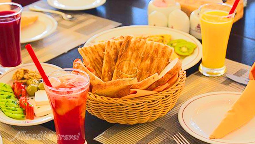 انواع نان شامل نان دنیش، نان کراسان، نان ایرانی (تافتون، سنگک، بربری)، نان فانتزی، نان سبزیجات، نان روگن، نان جو، نان باگت، نان بلومبیر، نان شیرین، نان امگا 3 نیز در بوفه صبحانه هتل پارسیان آزادی تهران سرو میشود.