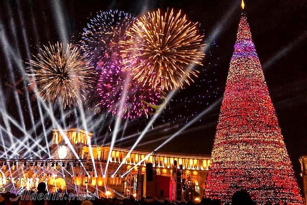 جشن سال نو در ارمنستان مدت ۱۳ روز است و از ابتدای ژانویه تا ۱۳ ژانویه ادامه دارد. بنابراین حسابی فرصت دارید برای یک سفر خوب به کریسمس در ارمنستان برنامهریزی کنید. در ارمنستان هنگام کریسمس جشنهای مختلفی برگزار میشود. برخی از این جشنهای شامل فستیوالهای شبانهروزی خیابانی هستند و برخی دیگر با آداب و رسوم خاصی در کلیساها انجام میشوند. برای دیدن جشن کریسمس ارمنی در روز ۶ ژانویه به کلیسای حواری ارمنی بروید. جشن کریسمس نیز در روزهای بعدی مانند عید ظهور در سایر کلیساها برگزار میشود که میتوانید در مورد آنها از راهنمای تور یا راهنماهای محای کمک بگیرید. برای دیدن زیباترین جشنهای کریسمس در ارمنستان میتوانید به میدان جمهوری در شهر ایروان بروید و حسابی با خانواده تفرثیح کنید. در شب سال نو نیز جشنهای متعددی در سالن باله و اپرای ایروان، هزارپله یا کاسکاد و میدان فونیکولار برگزار میشود که میتوانید در آنها نیز شرکت نمایید. در نهایت آخرین روز کریسمس نیز برای یادبود گذشتگان است. در این روز ارمنیها با دستههای گل به سمت کلیسای و خاک عزیزان میروند و با آنها وداع میکنند.